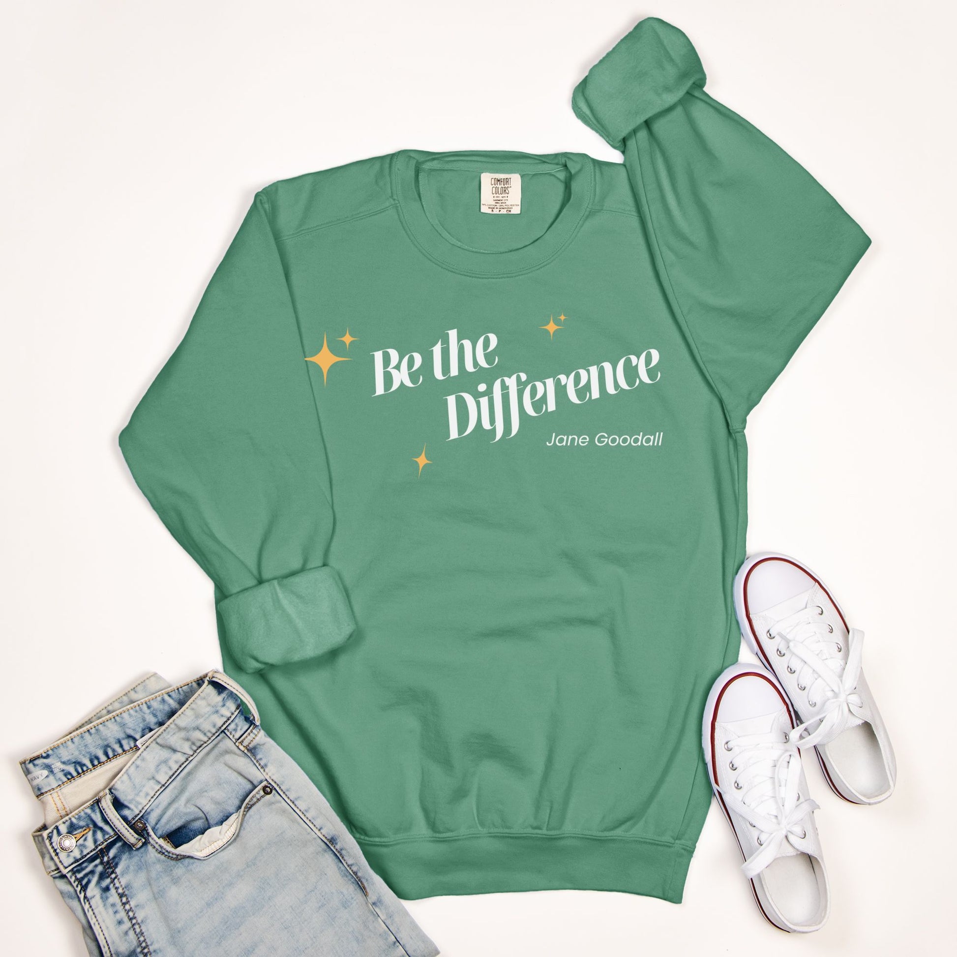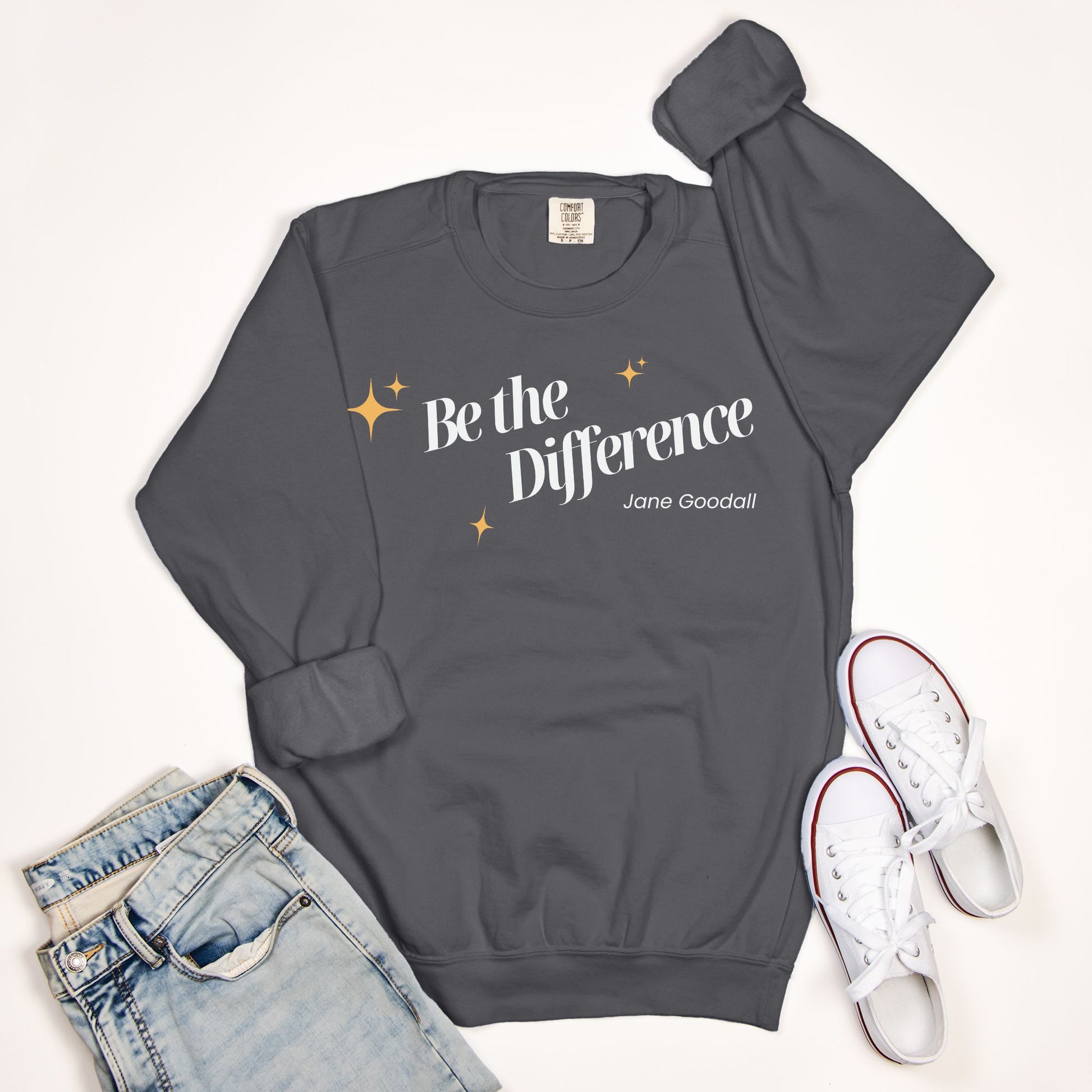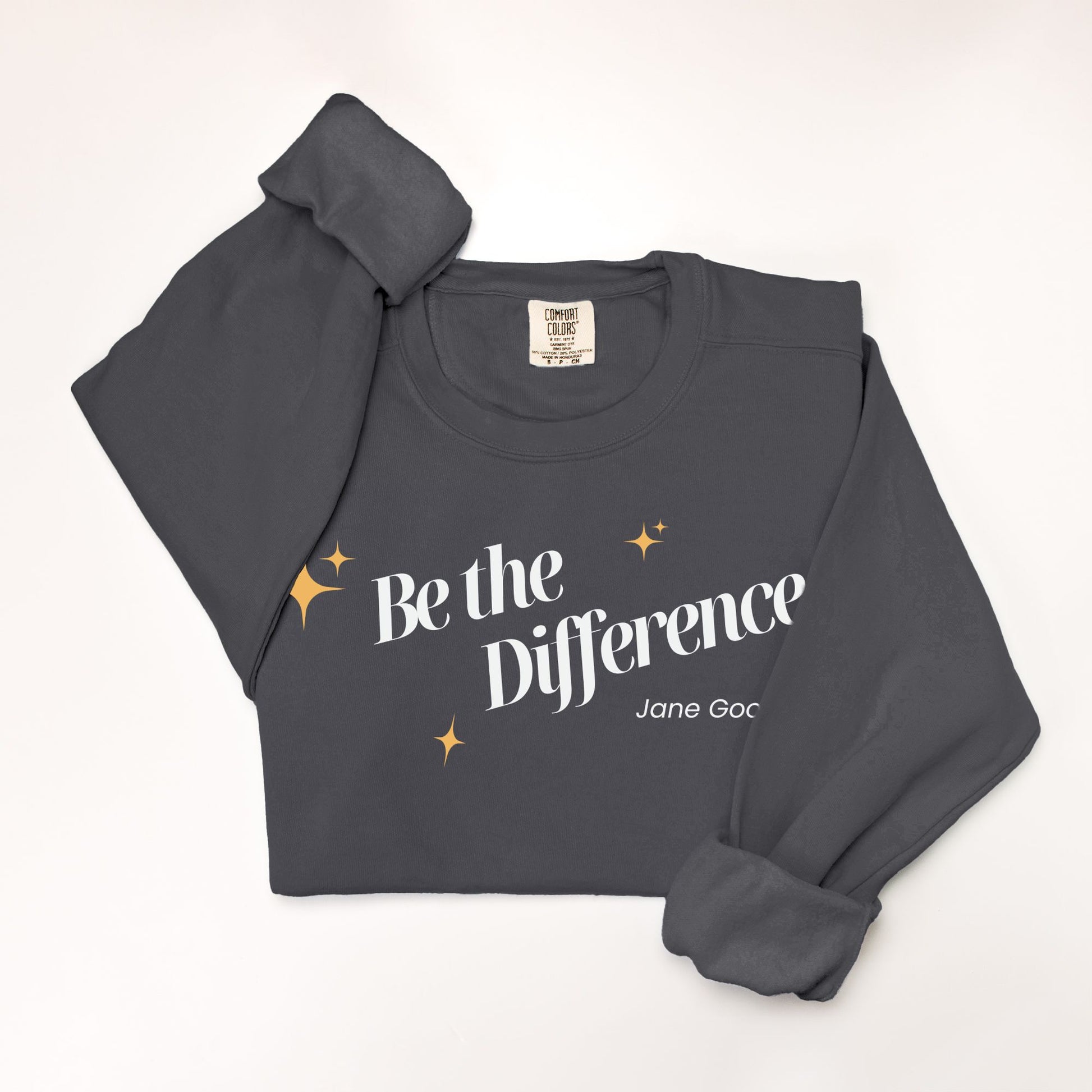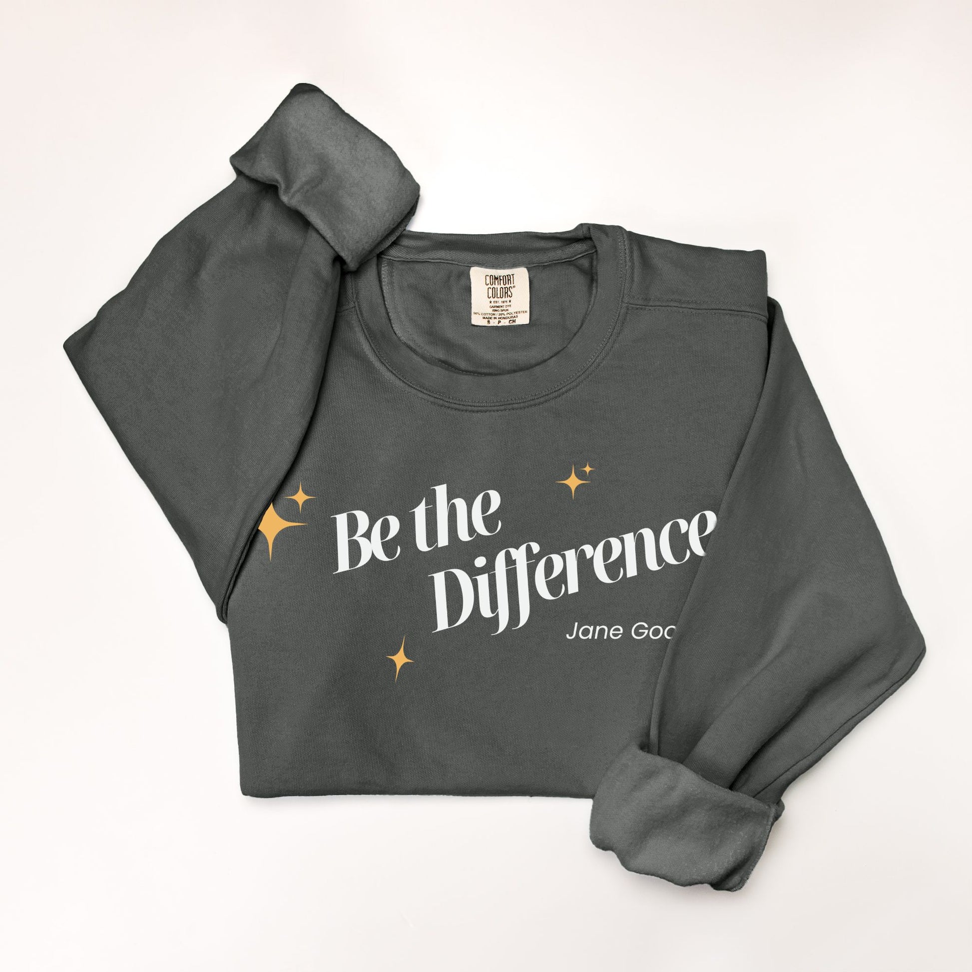Inspired by the words of Dame Jane Goodall, this vintage-style Comfort Colors Crewneck is a tribute to action, compassion, and wild purpose. Soft, relaxed, and consciously made, it’s more than a sweater, it’s a call to do good. Every stitch reminds us that what we do matters, and every purchase helps protect the creatures who can’t speak for themselves.
